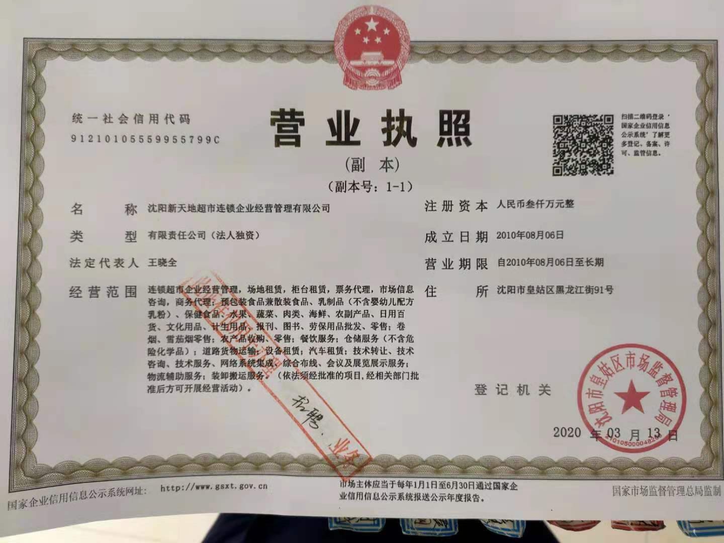 新天地集团,成立于1999年,历经十余载的发展建设,已经发展成为拥有员工5000余人,直营门店近千家的大型连锁集团企业。公司主营业务包括连锁便利店、连锁社区店、连锁生鲜超市、连锁加盟店,以及与之相关的服务业务。在“立足东北、辐射全国、走向世界”的目标指引下,一直勤奋的在东北三省的商海沃土中耕耘,并收获了丰硕的果实。集团以沈阳分公司、长春分公司、哈尔滨分公司为中心,辅以物流总公司、沈阳物流分公司、长春物流分公司、哈尔滨物流分公司 等,以点带面快速辐射发展,逐步向东三省内其它二三线城市发展,在2020年全国便利店百强排行榜中名列全国第19名,东北第一名,当之无愧的东北NO.1。 沈阳新天地超市有限公司隶属于新天地集团,成立于2010年,沈阳公司现有正式员工近1800余人,公司依据沈阳市场实际情况已制定开设5000家门店的宏伟战略规划目标,并建立了集仓储、配送、运输一体化的现代化立体物流配送中心,配置一流的软硬件配套设备和完善的采购系统,由公司总部统一经营、统一管理,努力打造沈阳市最具人性化、现代化、系统化、标准化、规范化的连锁超市。 历经十年的发展,至2020年底沈阳公司已在沈城发展直营门店300余家、加盟门店200余家。公司将直营门店开发和加盟门店拓展列为公司门店发展的双通路,齐同并进共同发展,公司统一店面形象,统一采购,统一配送,统一培训,统一营销,统一管理。公司从建立以来,致力服务于广大客户与顾客,我们始终坚持“敬业、认真、高效、务实”的企业精神,秉承“有限空间,无限便利,尽在新天地”的经营理念,快速发展壮大。力争在几年内实现东北三省万家门店的宏伟目标。
