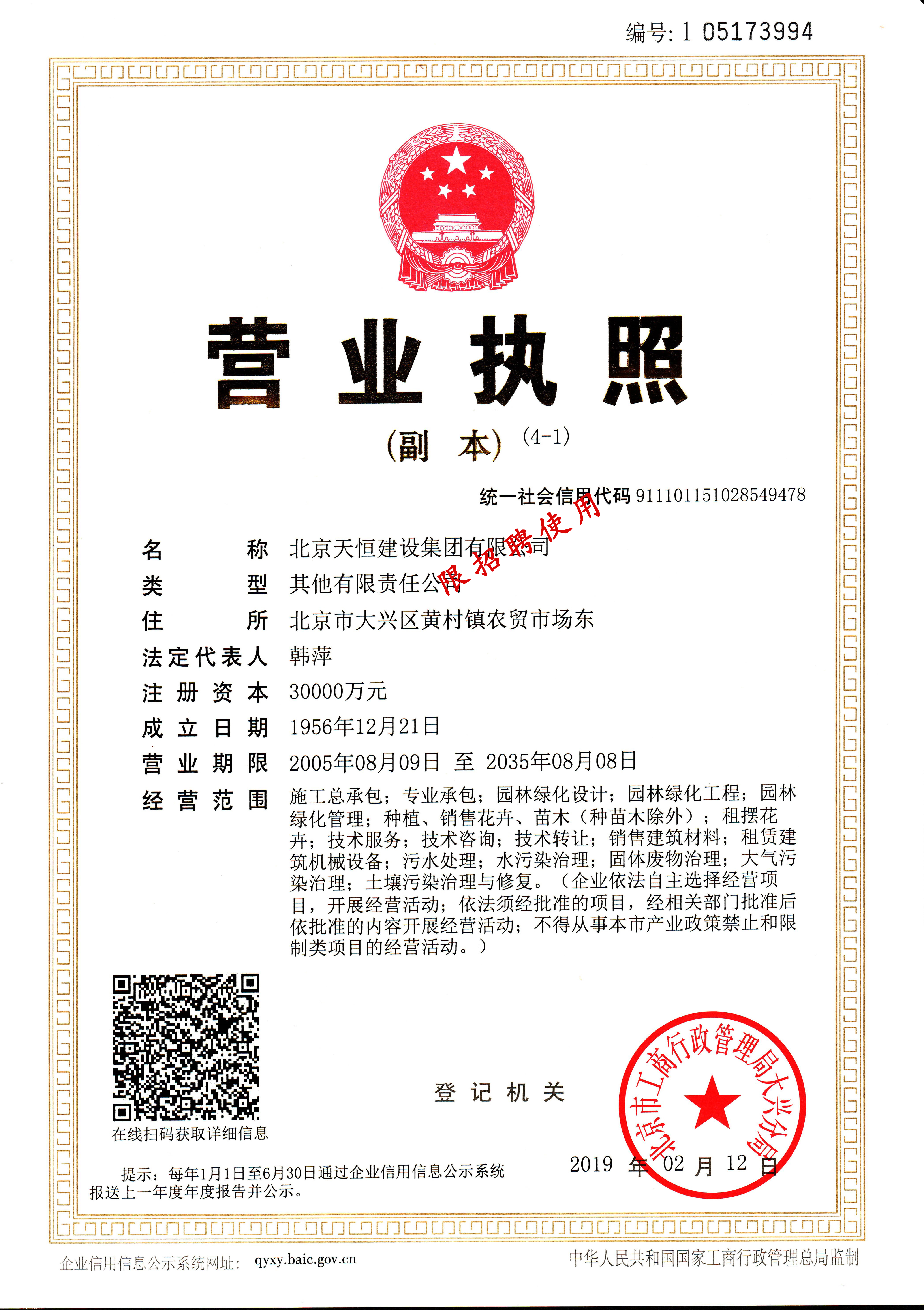 公司名称:北京天恒建设集团有限公司