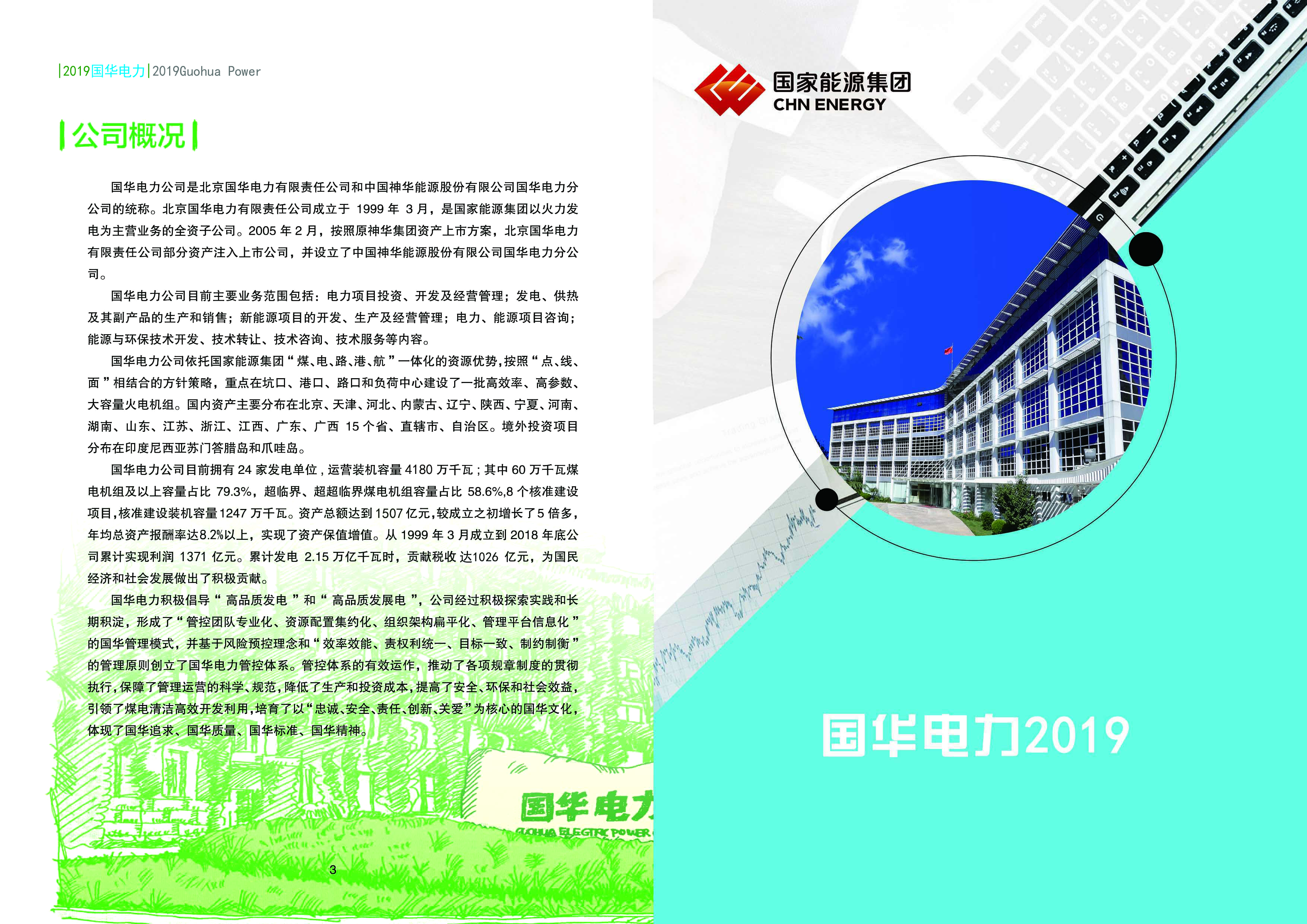 国华电力公司目前拥有24家发电单位,运营装机容量4180万千瓦;其中60万千瓦煤电机组及以上容量占比79.3%,超临界、超超临界煤电机组容量占比58.6%,8个核准建设项目,核准建设装机容量1247万千瓦。资产总额达到1507亿元,较成立之初增长了5倍多,年均总资产报酬率达8.2%以上,实现了资产保值增值。从1999年3月成立到2018年底公司累计实现利润1371万元。累计发电2.15万亿千瓦时,贡献税收达1026亿元,为国民经济和社会发展做出了积极贡献。