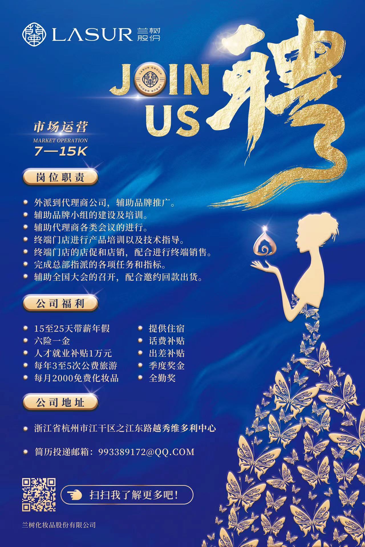 2.福利制度:带薪培训+六险一金+超长带薪年假+季度国内国外游+节日福利+每月化妆品福利