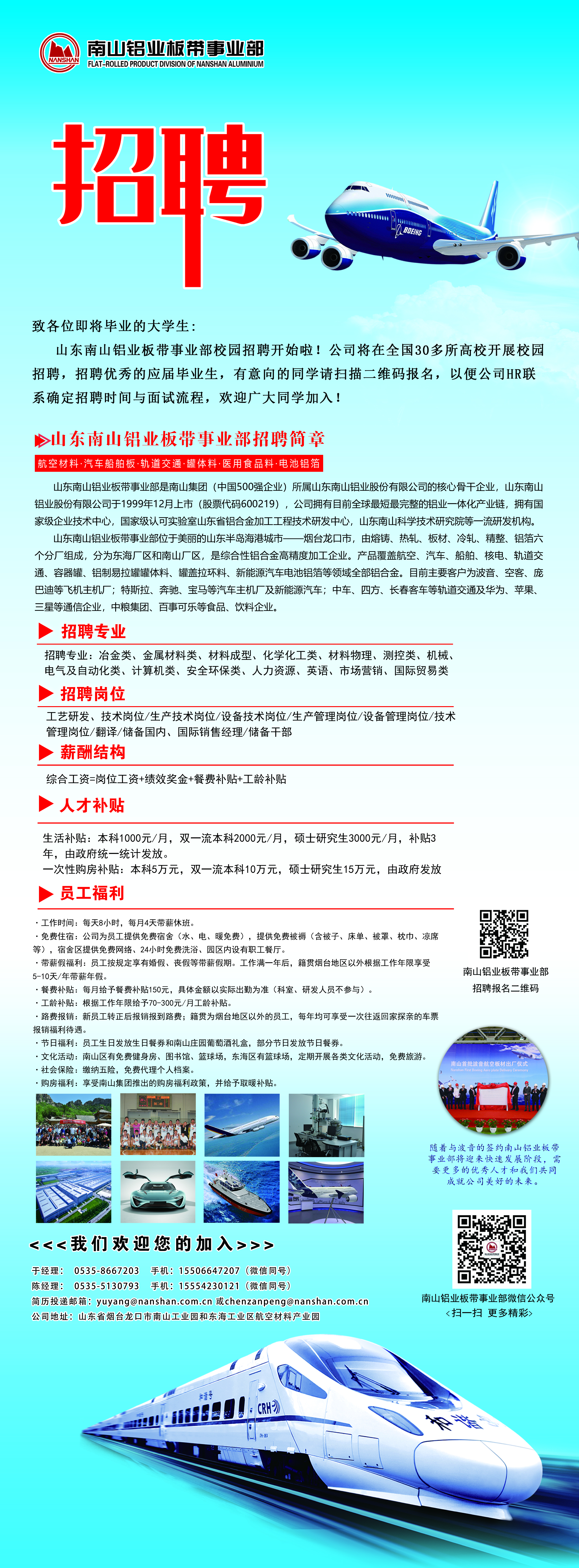 联系人于洋  手机15506647207   简历投递邮箱yuyang@nanshan.com.cn