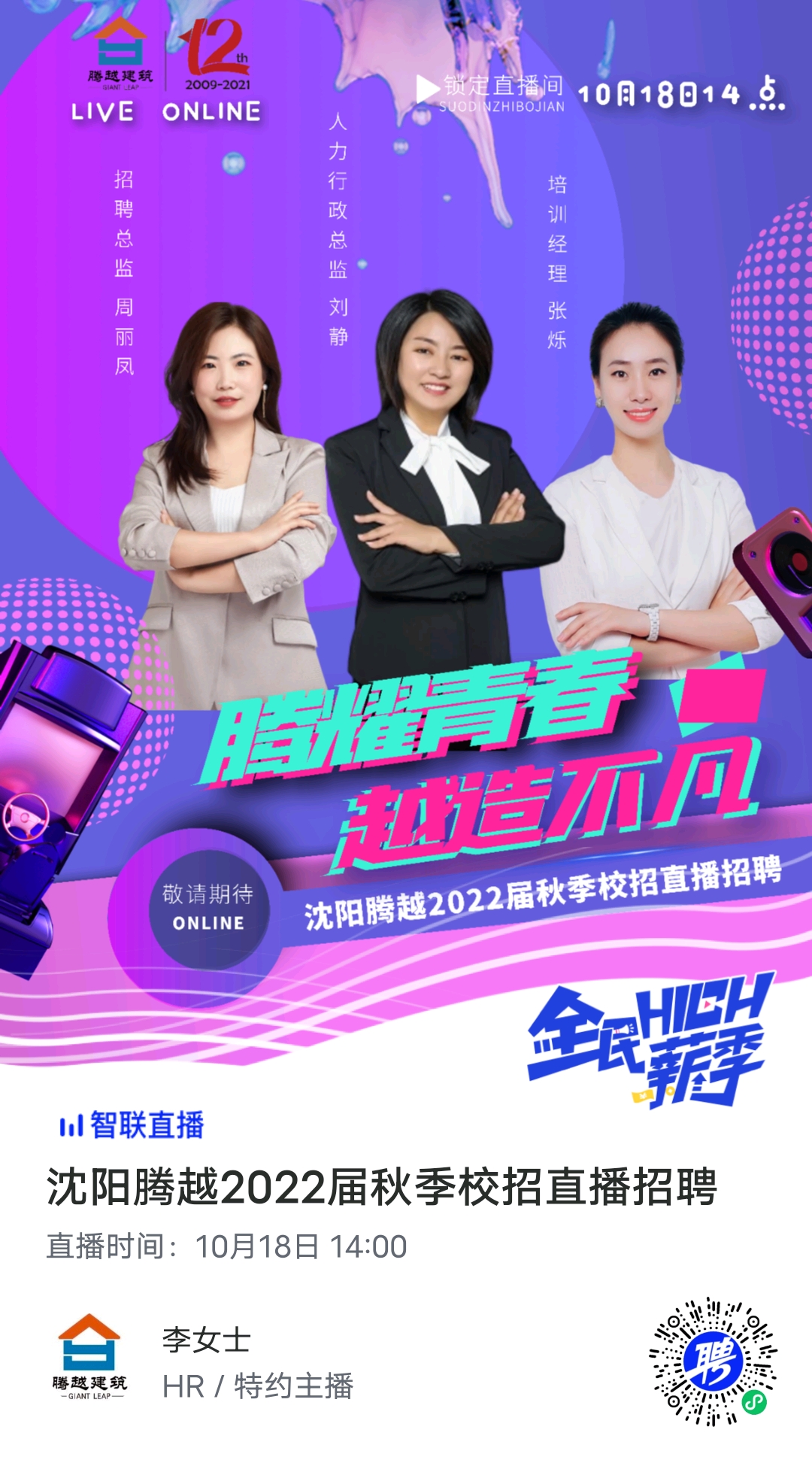 ┏ 腾耀青春 越造不凡 ┓ 沈阳腾越2022校园招聘火热进行中 想要在2022校招中脱颖而出吗? 想要先人一步拿到OFFER吗? 通通交给我们! ┗扫码关注,我在直播间等你┛