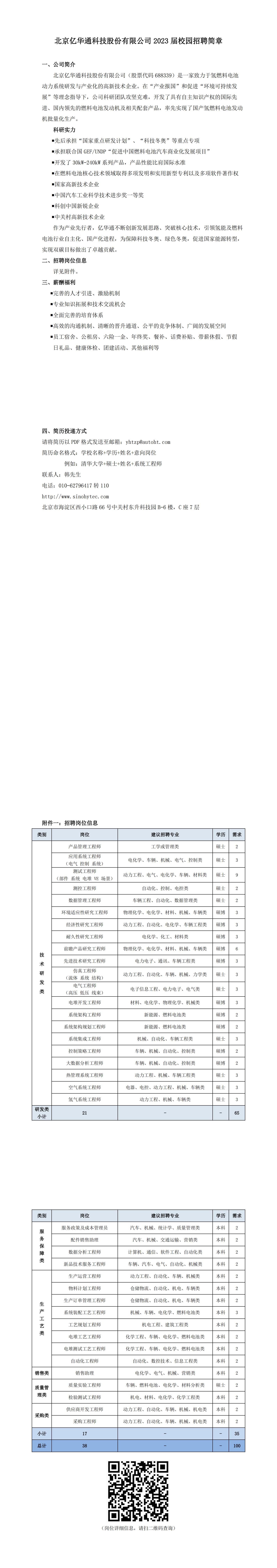 北京亿华通科技股份有限公司2023届校园招聘简章