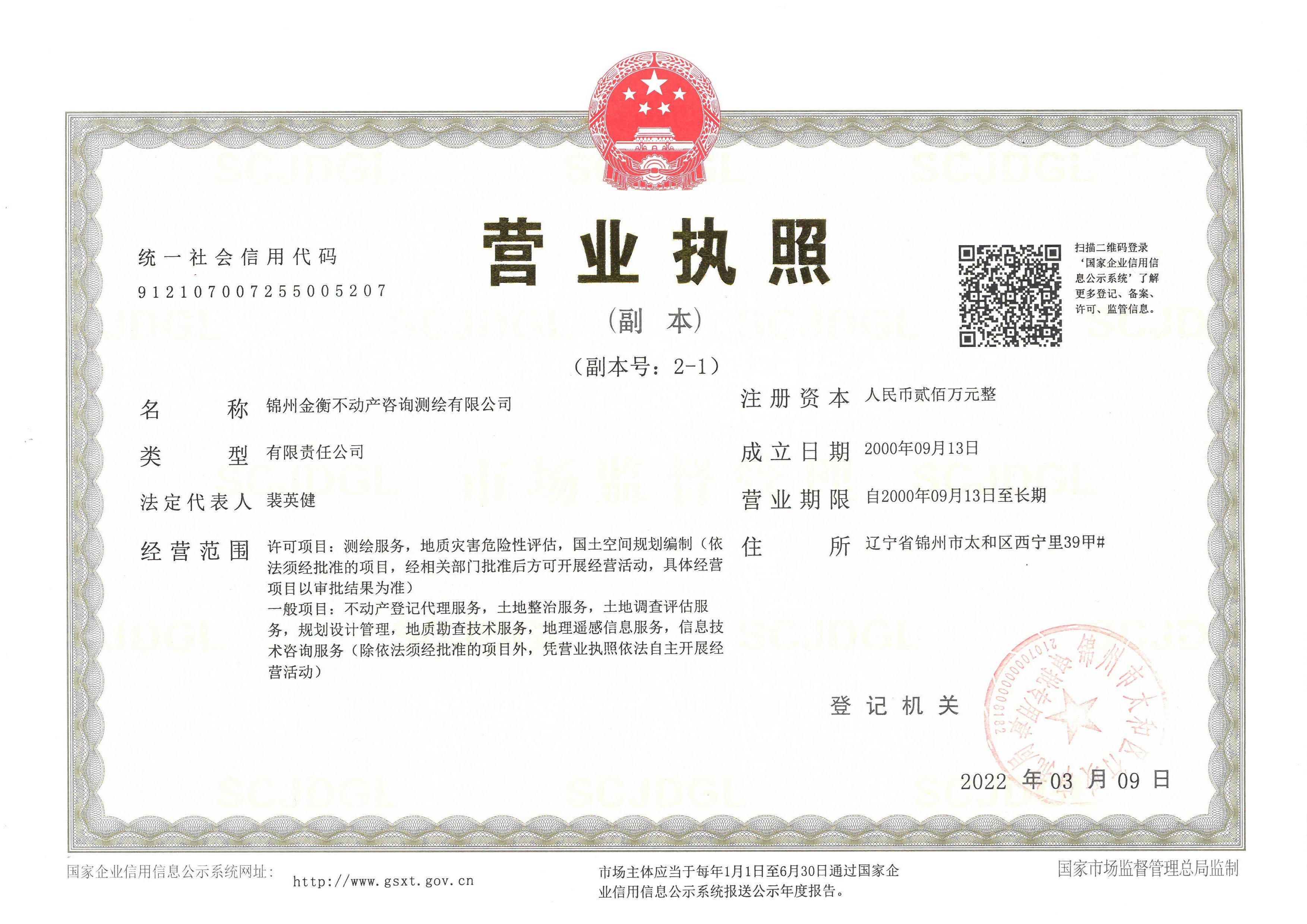 锦州金衡公司由锦州金衡不动产咨询测绘有限公司与锦州金衡土地房地产估价有限公司组成,总经营面积二千余平方米,现有员工40余人。其中,测绘工程师18名,高级工程师4名,国家注册土地登记代理人9名,国家注册房地产估价师9名,国家注册土地估价师8名,本科以上学历人数占90%;同时,公司还聘有土地规划、土地管理、农田水利、林业等方面专家顾问指导工作。