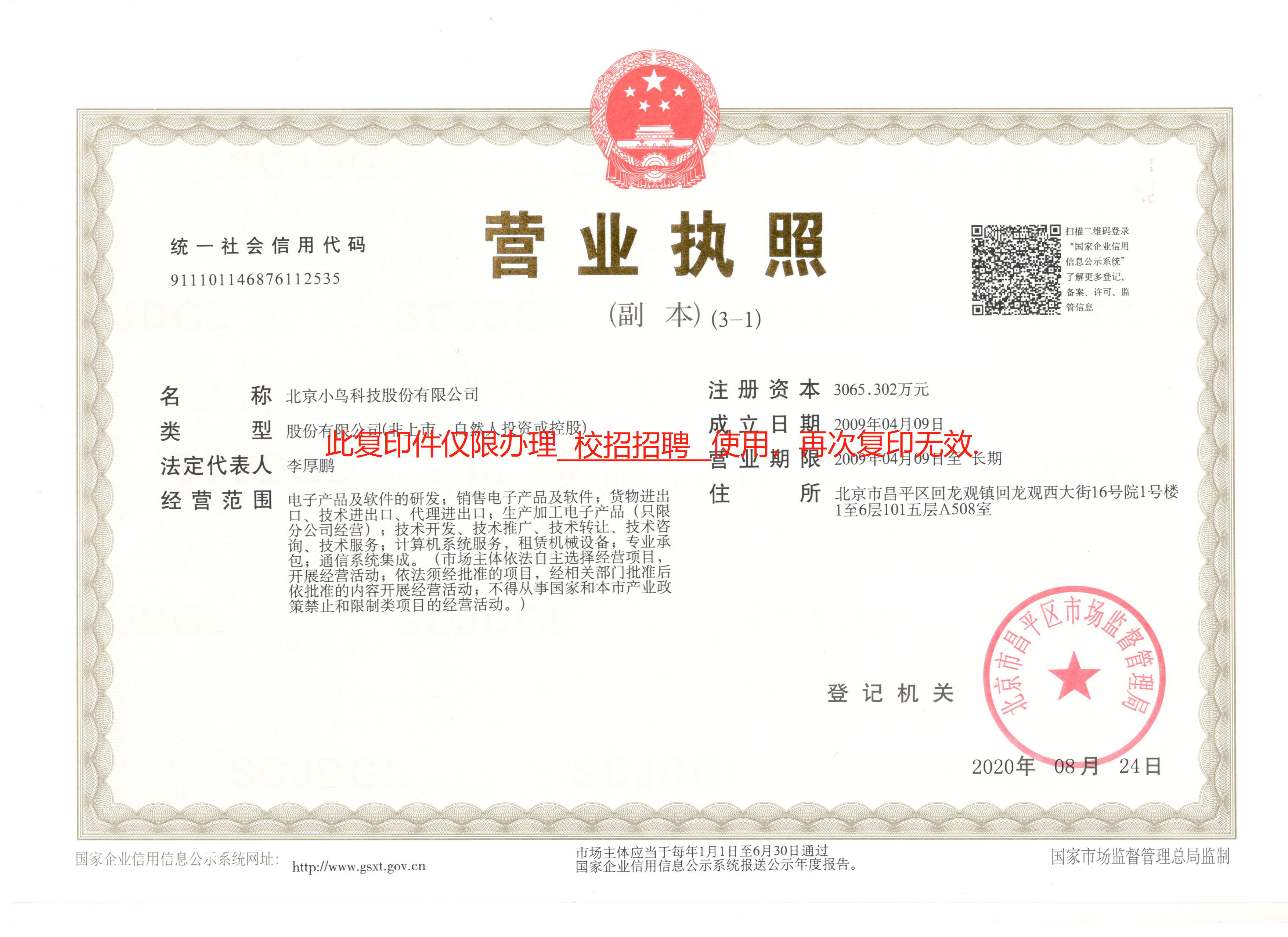 企业简介: 北京小鸟科技股份有限公司(DigiBird)成立于 2009 年,是一家专注于全球专业视听领域,为客户提 供数字化解决方案的国家高新技术企业、中关村高新技术企业。成立数年的时间里,在北京、上海、广州、深圳、成都、西安、沈阳、济南、南京等 15 个区域设立服务网点,并拥有软硬件两大研发团队、32 项专利,成功以自主品牌进入国际市场,渠道及服务覆盖全球 56 个国家及地区。 现有员工 400 余人,2019 年度销售收入 3.08 亿元,销售额同比增长 37%,11 年坚持不懈,企业年 均复合增长率 75%。 小鸟科技自成立伊始,就注重产品的研发和创新,陆续推出了一系列以传输、交换、处理、控制为主 的硬件设备及软件平台,涉及可视化管控、坐席管理、分布式、KVM 光矩、拼接处理器、边缘融合器等多个产品领域,是行业内技术领先的指控、会议行业解决方案供应商,广泛服务于政府、交通、能源、金融、教育、传媒等领域。 一直以来,小鸟科技不忘初心,坚持聚焦客户需求,为全球视听用户提供极具竞争力的产品、服务与 解决方案,持续为客户创造价值。 企业文化: 企业愿景: 让员工以在“小鸟”工作为荣,在专业视听领域,成为国际品牌。 企业使命: 为全球指控中心、会议室用户提供稳定可靠、简捷易用的解决方案,确保信息全面、及 时、准确,使工作更高效。 价值观: 乐于分享、追求卓越、紧密协作、勇于担当、长期奋斗、持续学习。 *管培生将统一安排在北京入职,培训 6-12 个月,结合个人意向与公司需求确定实际工作地点* 公司地址:北京市昌平区回龙观龙冠商务中心银座5层501 邮编:102208 电话 Tel: 8610-59548001 传真 Fax: 8610-59548010 网址: www.digibird.com.cn 福利待遇: 北京户口、北京”绿卡” 大神做导师、成长 1>3 富有竞争力的薪酬水平、完善的新员工培训体系 七险一金、年度体检、带薪年假、生日补贴、结婚礼金等丰富福利 应届毕业生提供员工宿舍,半小时可步行到公司 简历投递方式: 邮箱投递:school@digibird.com.cn(邮件主题格式:学校名称+应聘职位+姓名) 校招热线:010-59548009 公司官网:www.digibird.com.cn 校园招聘订阅号:微信号 digibirdfuture1