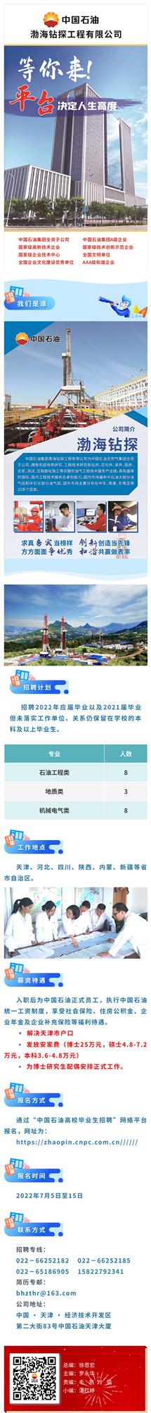 渤海钻探夏季招聘